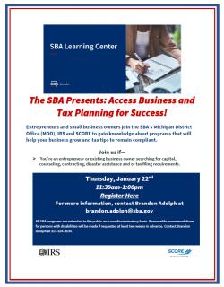 The SBA Presents: Access Business and Tax Planning for Success!