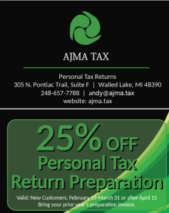 New Client Coupon for 25% Off Personal Income Tax Return Preparation